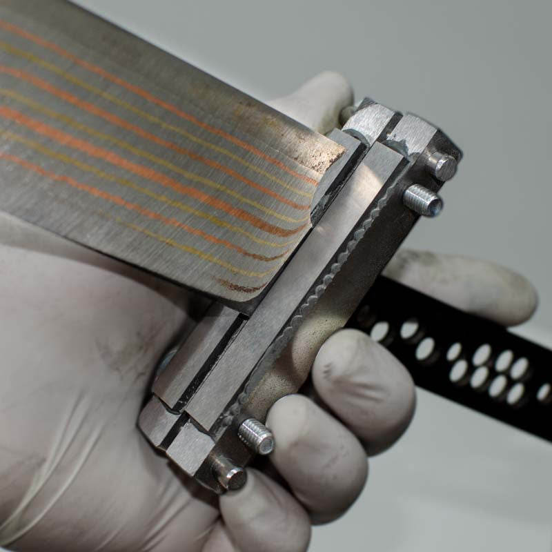 Основен инструмент за ножари. Макар че главното му приложение е да подсигури симетрия на рикасото при шлайфане на скосовете и за шлайфане на опашки на остриета, може също да се използва за точно подравняване на болстъри и чирени.